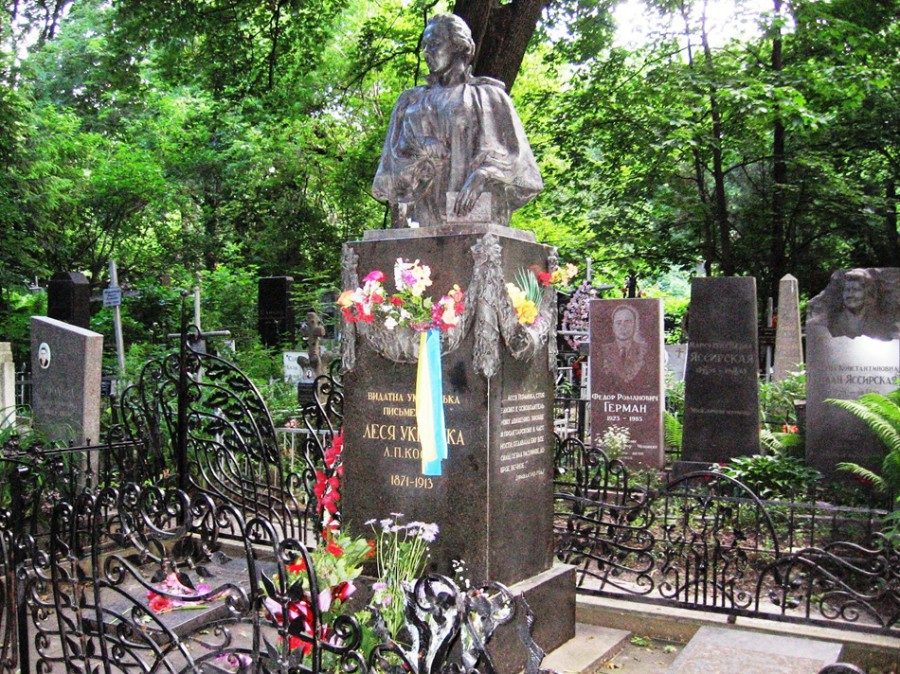 Могила Лесі – центр квартету: поруч батько Петро Антонович Косач (1841–1909), прогресивний поміщик і меценат; брат Михайло Петрович (1869–1903), математик і поет-початківець; мати Ольга Петрівна Косач (Олена Пчілка, 1849–1930), феміністка й письменниця. Спільна огорожа об’єднує їхні надгробки.