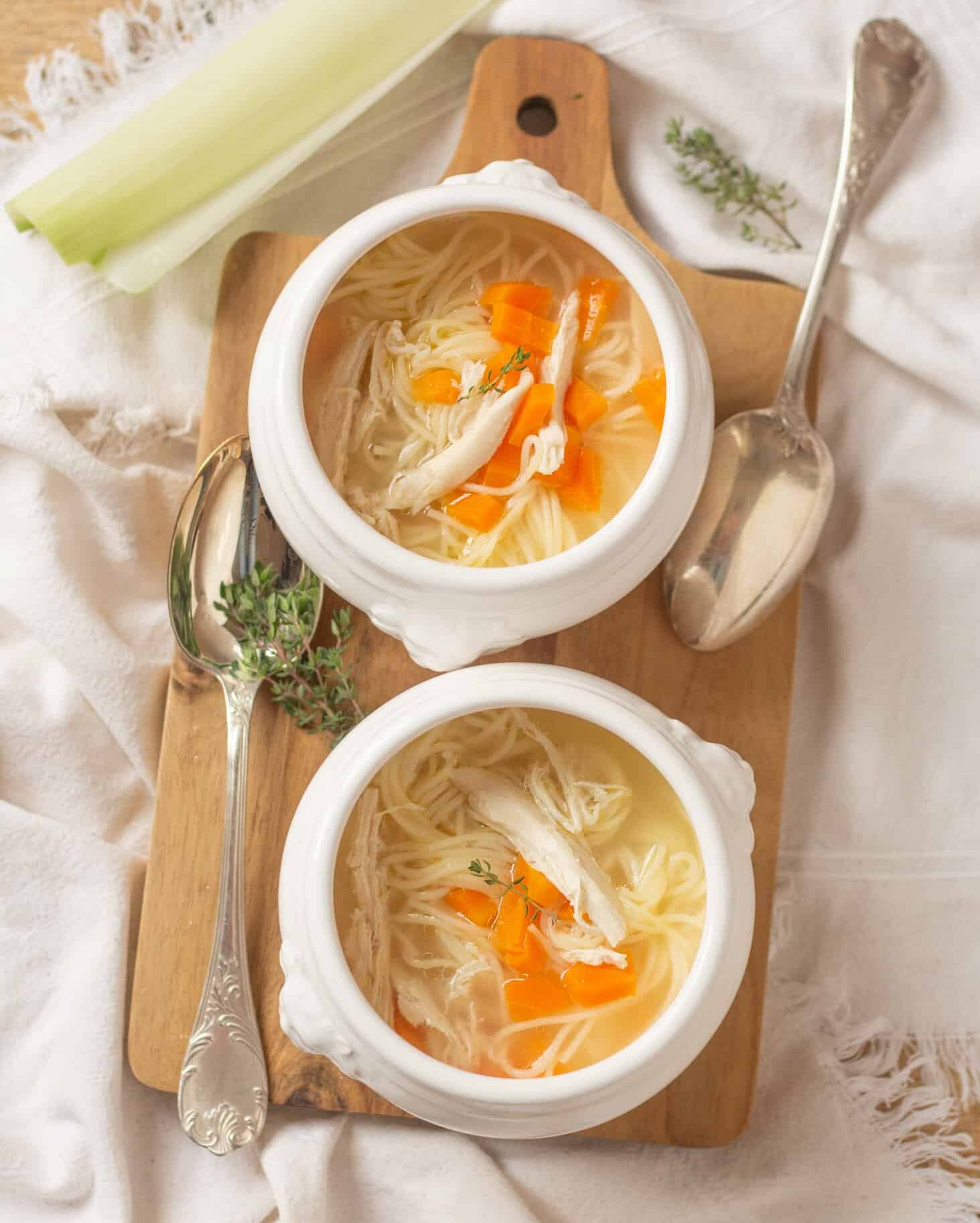 В українській кухні курячий бульйон – це не просто рідина, а символ турботи, вариться з домашньої курки на повільному вогні. Традиційно його подають з тонкою павутиною локшини, яку бабусі витягують вручну з прісного тіста з яйцем. Така локшина не розварюється, тримає форму і ідеально вбирає аромат – курячий жир робить її блискучою, ніби шовком обтягнутою.